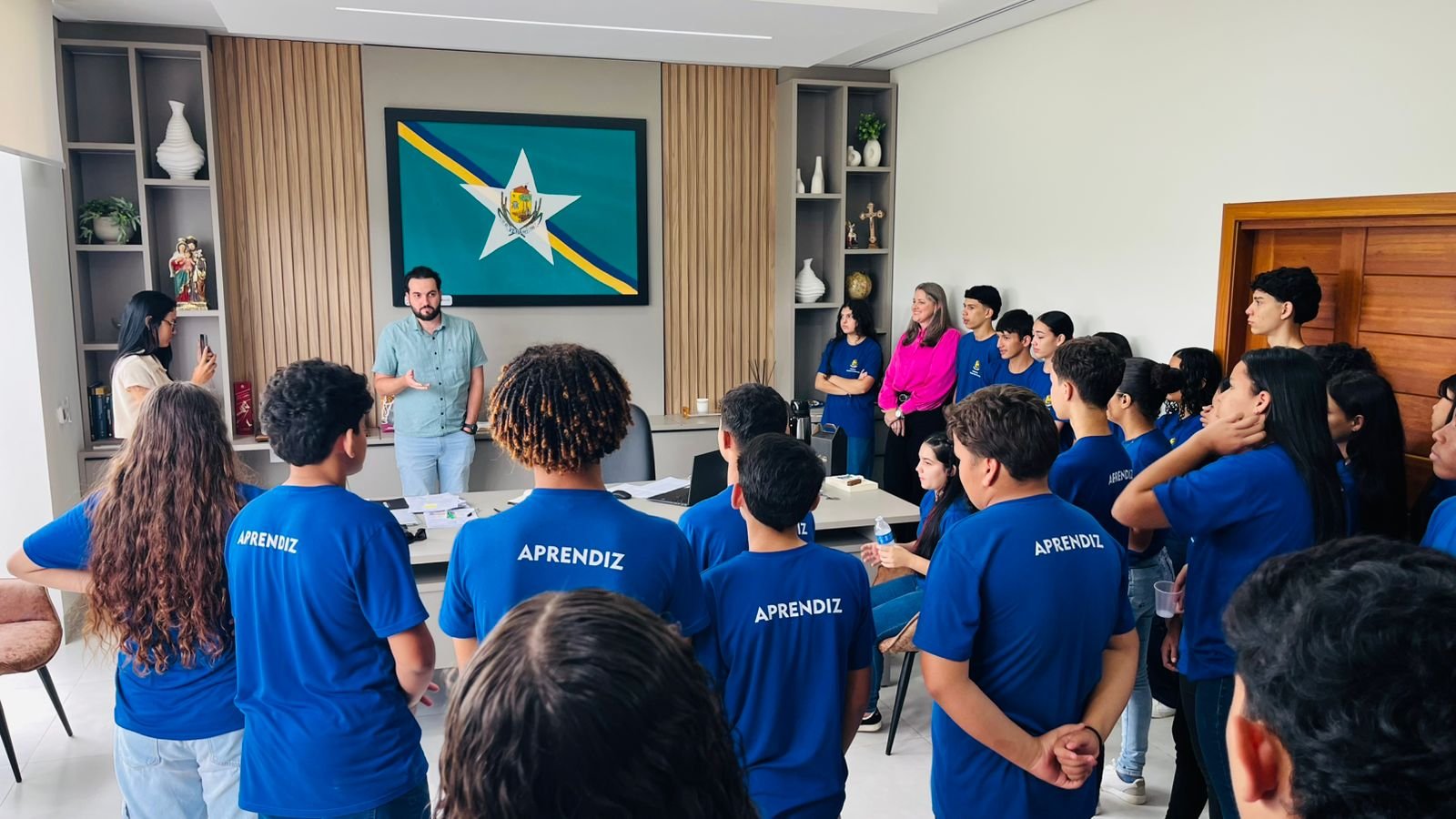 Jovens do projeto Cidadão do Futuro conhecem a estrutura da Prefeitura de Vera em visita ao Paço Municipal