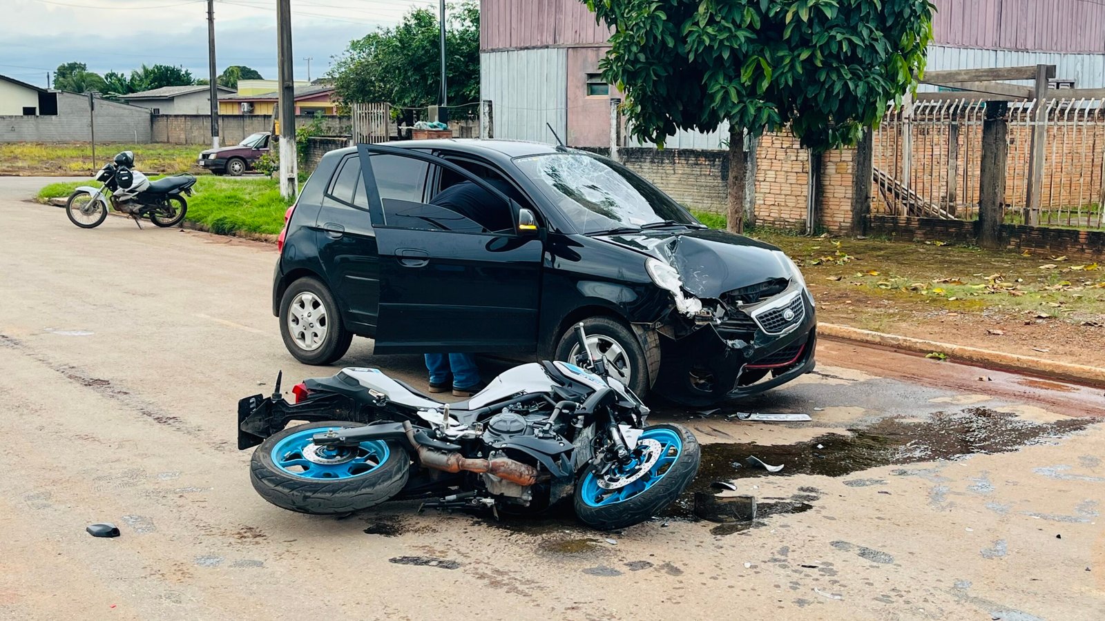 Acidente entre carro e moto deixa motociclista ferido na Avenida Nicarágua em Vera