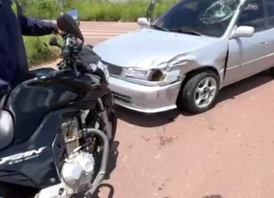 Sinop: motociclista é hospitalizado após colisão frontal com carro