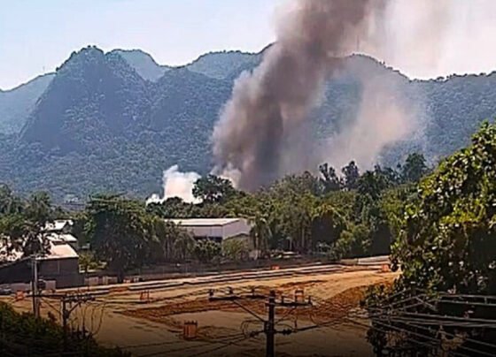 Reprodução Um incêndio atinge uma área da Cidade Cenográfica nos Estúdios Globo no bairro da Curicica, na zona oeste do…