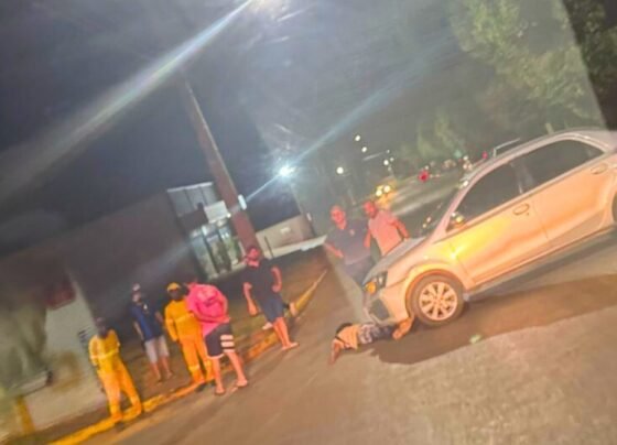 Motociclista fica preso embaixo de veículo e é socorrido pelo SAMU em Sorriso