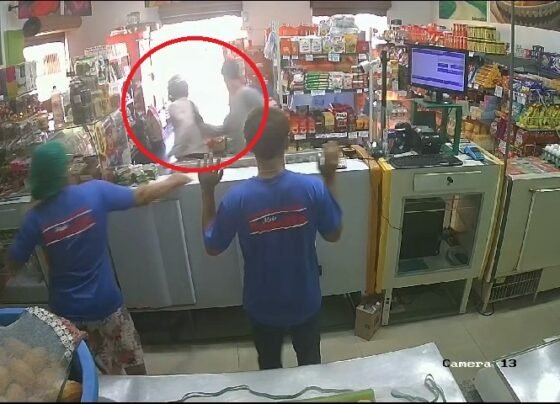 Uma câmera de monitoramento registrou o momento em que dois criminosos armados invadiram uma mercearia em Rondonópolis e atearam fogo…