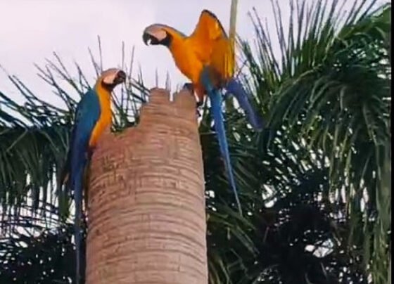 Reprodução Um casal de araras resolveu fazer um ninho em um local inusitado e foi flagrado por moradores do bairro…