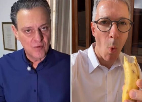 Reprodução/Instagram O ministro da Agricultura, Carlos Fávaro (PSD), repreendeu o governador de Minas Gerais, Romeu Zema (Novo), por comer banana…