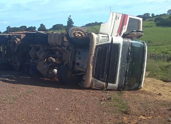 Motorista tenta desviar de buracos e carreta tomba em rodovia estadual no Nortão