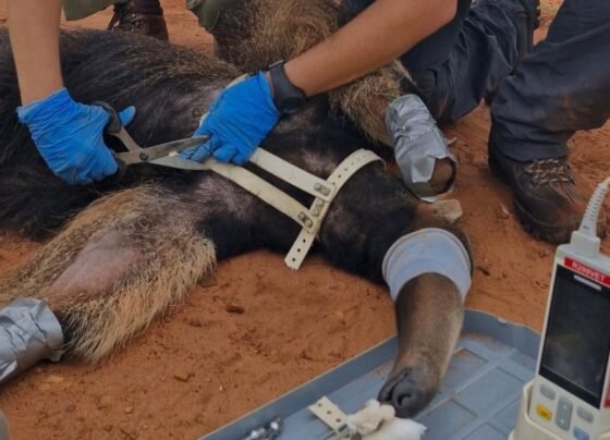 Tamanduá-bandeira ganha colete para rastreamento e monitoração da saúde