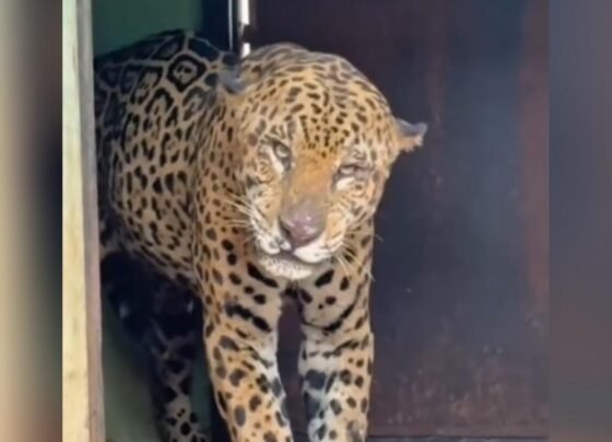 A onça-pintada capturada em abril deste ano, suspeita de matar um caseiro na região de Touro Morto, no Pantanal de…