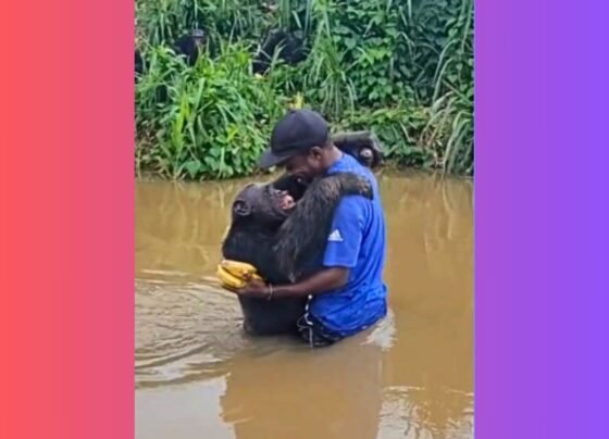 Chimpanzé ‘sorri’ e abraça antigo cuidador após anos separados