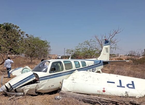 Bombeiros resgatam gestante e homem que ficaram feridos após queda de aeronave