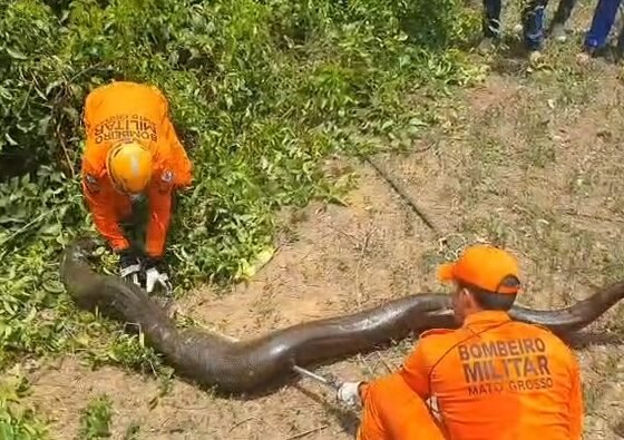 Sucuri de aproximadamente 5 metros é capturada após ameaça de populares de matar a cobra