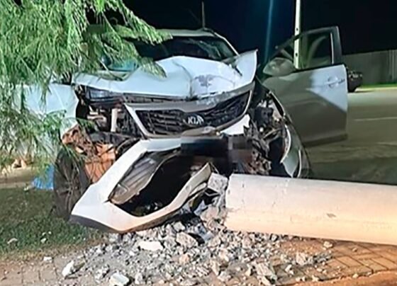 Carro desgovernado atinge poste em MT; mãe e filha são socorridas