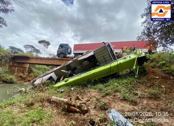 Ponte do Corgão será interditada na MT-560 entre Sorriso e Tapurah para retirada de guindaste