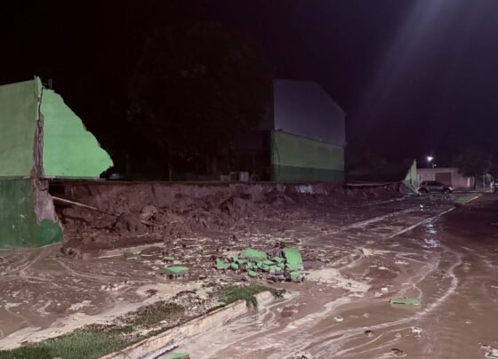 Após uma forte chuva na noite desta segunda-feira (2) em Coxim, o muro de uma escola estadual desabou e ruas…