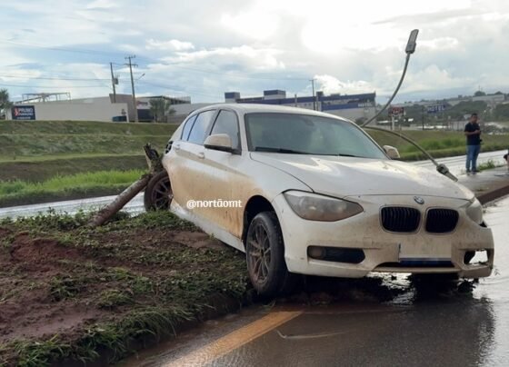Motorista perde controle de BMW e colide contra poste na BR-163 em Sorriso