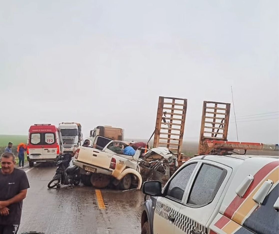 Um acidente de trânsito foi registrado na MT-140, no sentido Sorriso, nas proximidades da Fazenda Magiana, na manhã desta segunda-feira (09). A colisão envolveu uma caminhonete e uma carreta prancha.