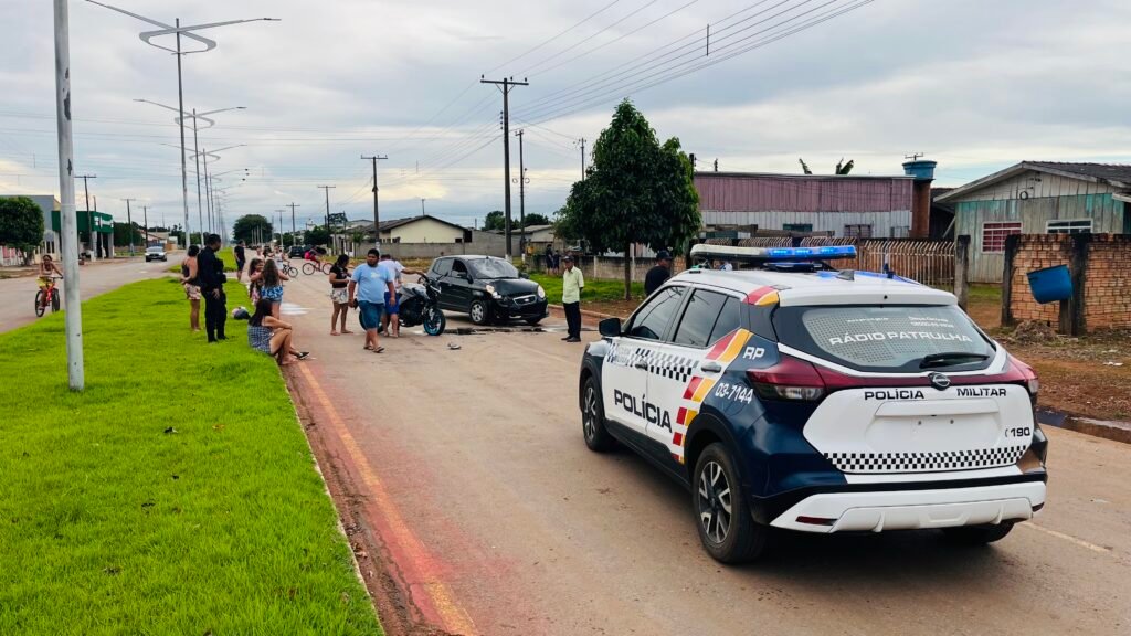 Um acidente envolvendo uma motocicleta e um carro foi registrado na tarde deste domingo (22) na Avenida Nicarágua, em Vera. A colisão mobilizou moradores que estavam nas proximidades e a Polícia Militar, que esteve no local para realizar os primeiros levantamentos da ocorrência.