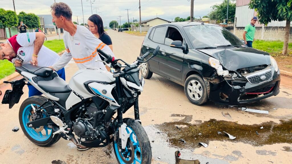 De acordo com as informações apuradas, o carro teria entrado na contramão, provocando a batida com a motocicleta. Com o impacto, o condutor da moto ficou ferido e precisou ser socorrido, sendo encaminhado ao Pronto Atendimento Municipal.