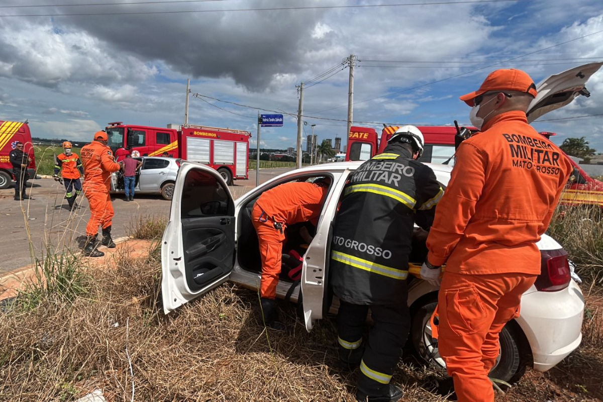 Uma mulher estava retida no interior do carro e precisou ser retirada com técnicas específicas de resgate veicular. A extração foi feita de forma segura, sem constatar de fraturas.