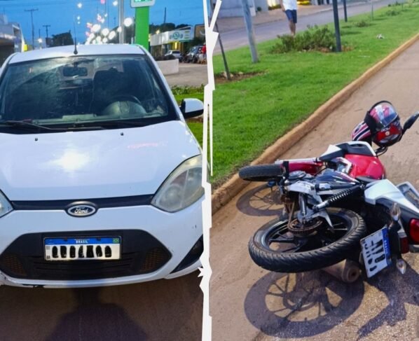 Um acidente de trânsito foi registrado no fim da tarde deste domingo (25), por volta das 18h20, na Avenida Brasil, em Vera-MT, em frente à Pizzaria Tropical. A ocorrência envolveu um veículo Ford Fiesta e uma motocicleta Honda CG 160.