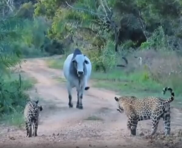 Uma cena inusitada foi registrada em uma estrada de chão no Pantanal: um boi colocando duas onças-pintadas para correr! O final poderia ter sido outro. Confira o vídeo: