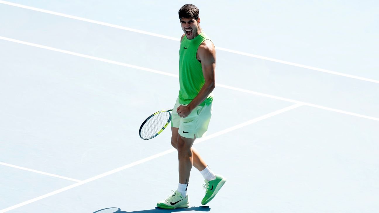 O espanhol Carlos Alcaraz segue em busca de vencer o Australian Open pela primeira vez, único Grand Slam que ainda não venceu.
