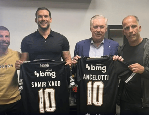 O técnico da Seleção Brasileira, Carlo Ancelotti, e o presidente da CBF, Samir Xaud, estão presentes em São Januário na noite deste domingo (2) para acompanhar a partida entre Vasco e São Paulo, pela 31ª rodada do Campeonato Brasileiro.