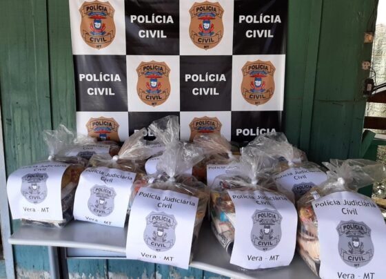 Assessoria/Polícia Civil-MT A Polícia Civil em Vera (458 km ao norte de Cuiabá) fez a doação…