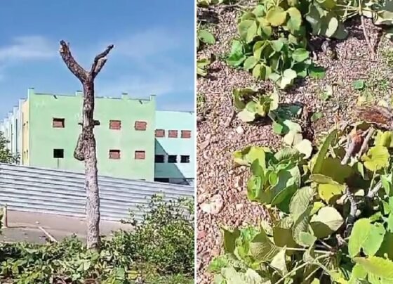 Um vídeo que circula nas redes sociais mostra o momento em que um pequizeiro é cortado na sede da Secretaria…
