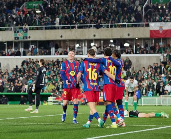 O Racing partiu para o ataque na metade final da segunda etapa. Manex Lozano, que entrou no intervalo, marcou dois gols, mas ambos foram anulados por impedimento no início da jogada. Nos acrésimos, Lamine Yamal recebeu o passe de Raphinha, aproveitou a defesa desprotegida do time de Santander e fechou o placar.