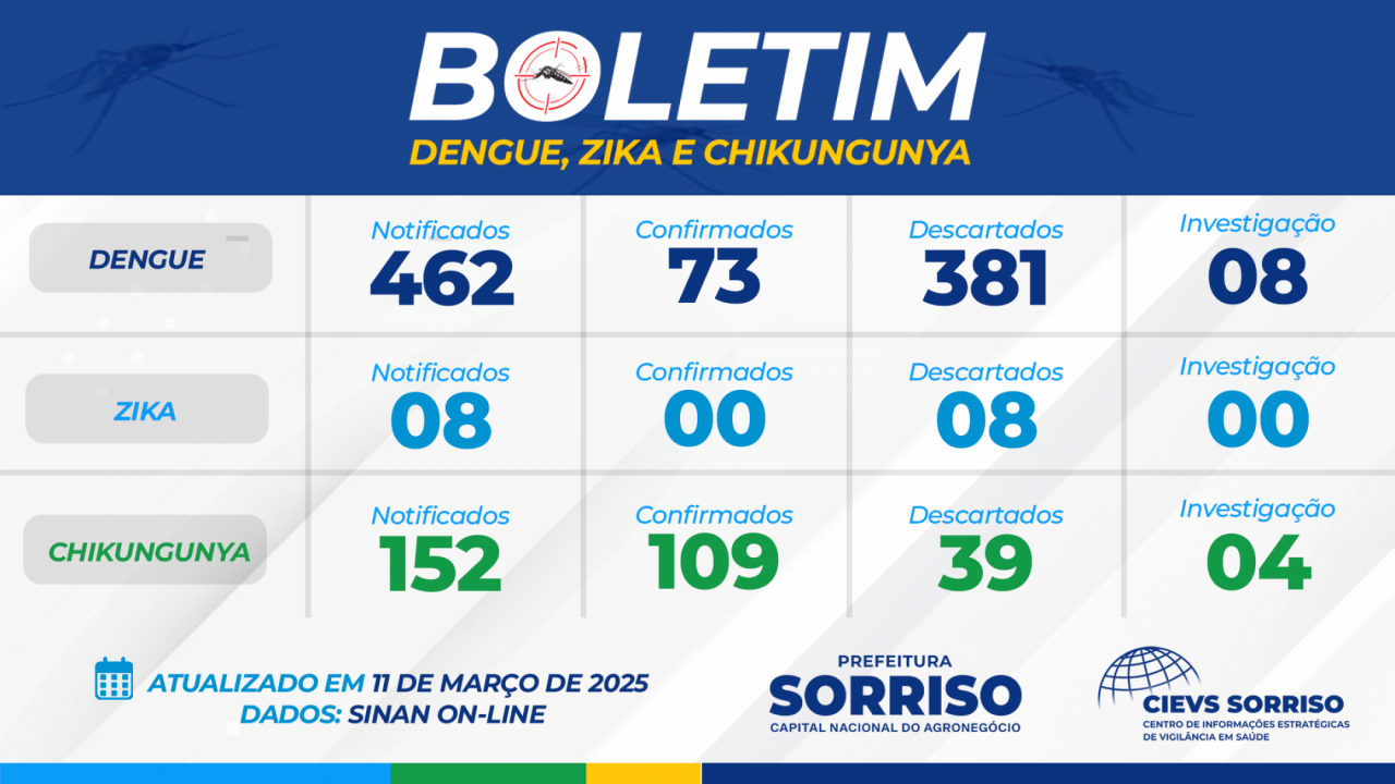 A Secretaria de Saúde, por meio do Centro de Informações Estratégicas de Vigilância em Saúde (Cievs), divulgou ontem, 11 de março, o número de casos de arboviroses como dengue, chikungunya e zika vírus registrados desde 1.º de janeiro de 2025 até o momento.