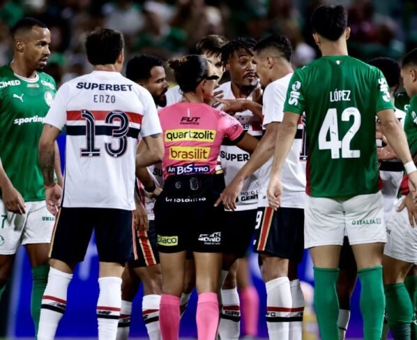 O Palmeiras venceu o São Paulo por 2 a 1, neste domingo (1º), e garantiu vaga na final do Paulistão. Em campo, o time tricolor ficou na bronca com um lance enquanto a partida estava 1 a 0 para o adversário.