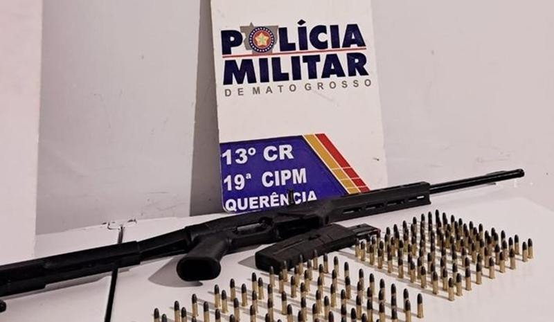 Diante da situação, o armamento e as munições foram apreendidos e encaminhados à Polícia Civil de Querência, que investiga o caso. O suspeito não foi preso.