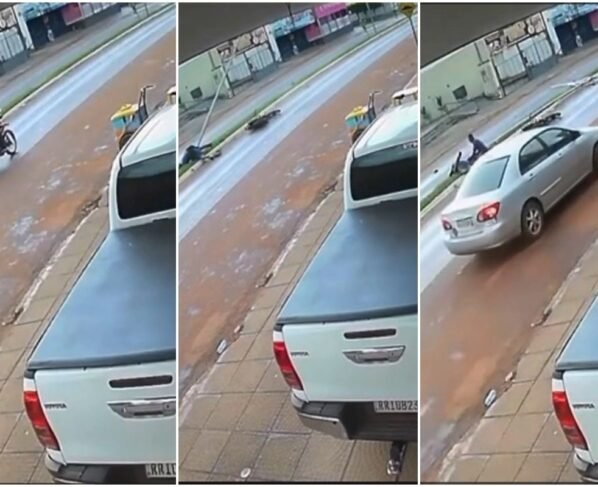 Uma câmera de segurança flagrou, na tarde do domingo (23), o momento em que um motociclista, ainda não identificado, perde o controle e colide com um poste, na cidade de Peixoto de Azevedo.