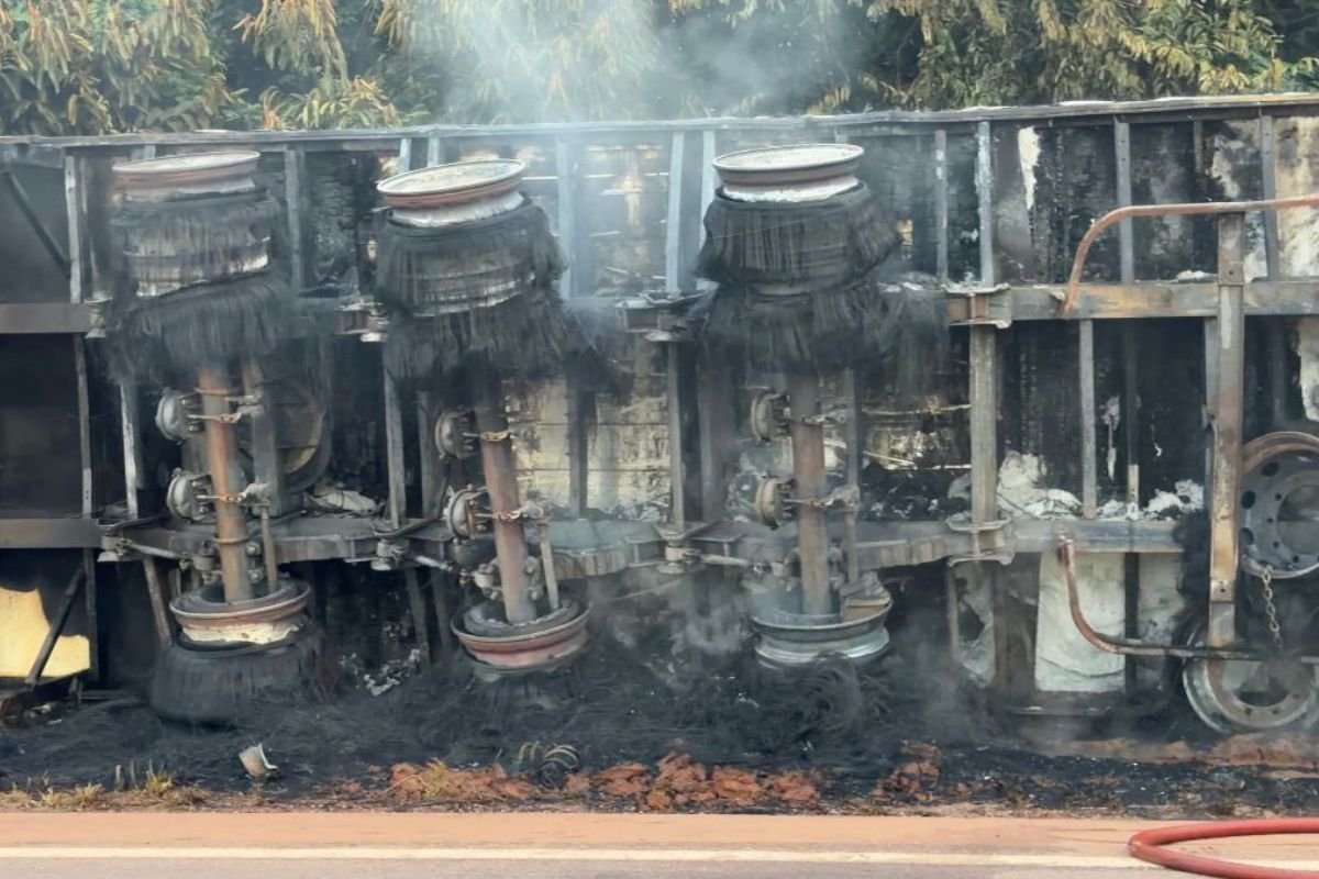 Carreta pega fogo na BR-163. – Foto: Rhenzo Nogueira