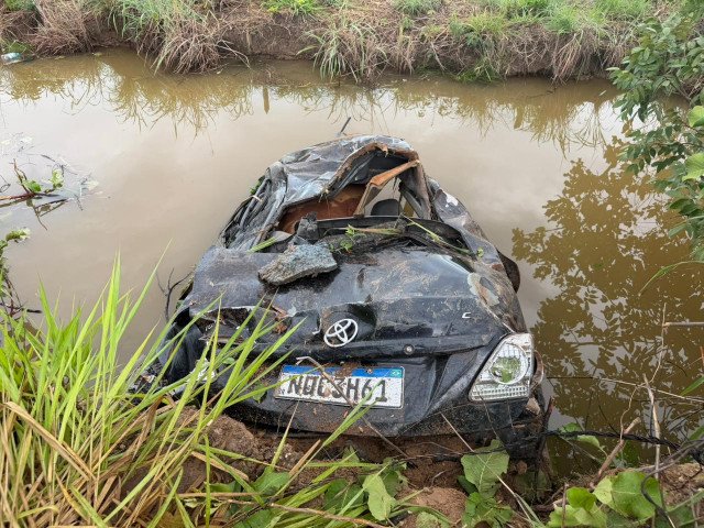 Após o capotamento, o veículo caiu de uma ribanceira e ficou dentro de um lago que fica abaixo da avenida.