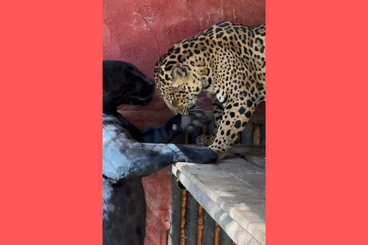 Thor, um imponente macho de pelagem preta — característica rara nas onças-pintadas e popularmente conhecida como “onça-preta” ou melanismo —, parece ter se encantado à primeira vista por Palominha, uma fêmea de pelagem dourada com pintas bem definidas. Segundo o instituto, o encontro entre os dois foi tranquilo e carinhoso, um forte indicativo de compatibilidade entre o casal.