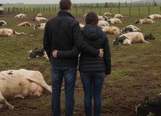 Foto: Arquivo pessoal da família Winter Uma família de agricultores de Novo Xingu (RS) perdeu 48 vacas leiteiras em lactação…