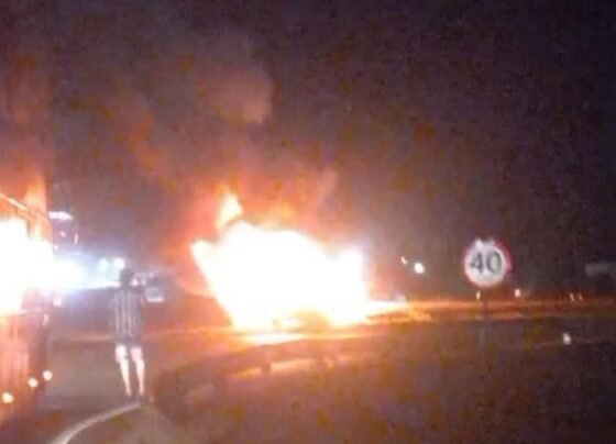 Carro sai da pista, bate em poste e pega fogo em rodovia de Mato Grosso
