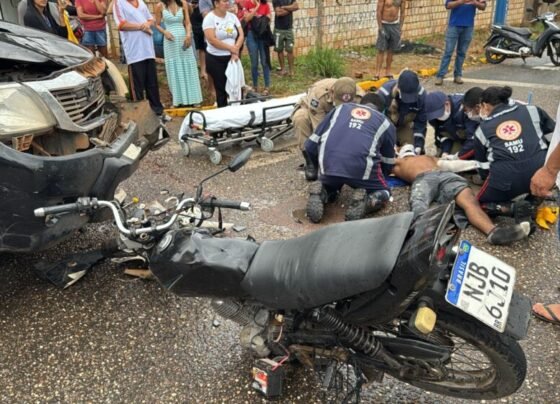 Sorriso: Bombeiros e SAMU socorrem homem ferido em grave acidente entre moto e Hilux Um grave acidente foi registrado no…