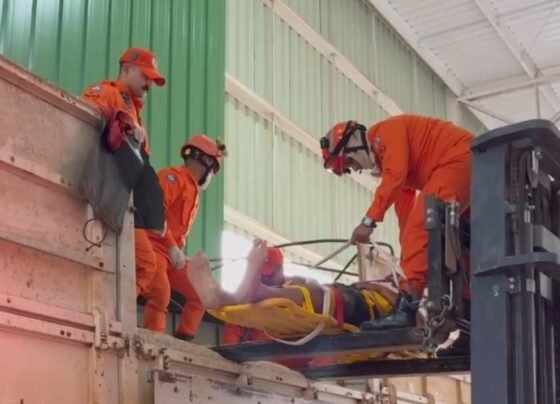 Trabalhador fica ferido após ser atingido por carga de 1,8 tonelada durante carregamento de carreta