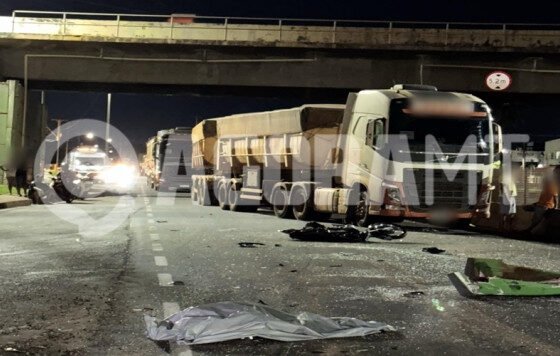 Motociclista morre em engavetamento com carretas e viatura da PM