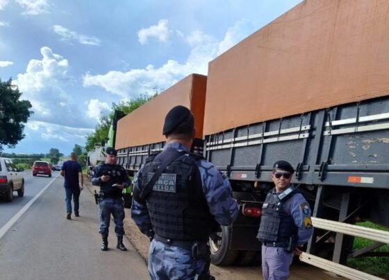 PM e PRF apreende carga contrabandeada com 309 pneus que seria levada para Sorriso