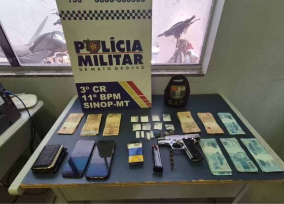 Sinop: dois presos com pistola, drogas e R$ 8,5 mil