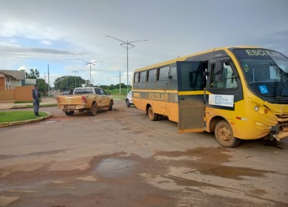 Em Vera; Colisão entre toyota hilux e ônibus escolar causa danos materiais