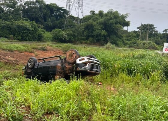 Caminhonete capota em rotatória na MT-140 entre Vera e Santa Carmem