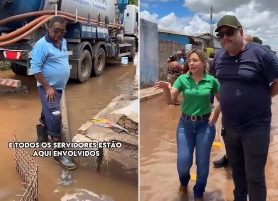 Reprodução A prefeita de Várzea Grande, Flávia Moretti (PL), visitou neste domingo, 8 de fevereiro, os bairros atingidos pelas fortes…