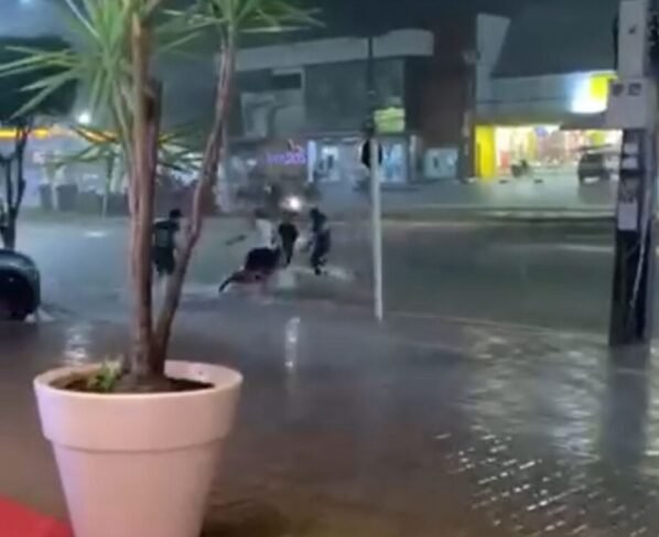A intensidade da chuva provocou o transbordamento de galerias pluviais e o acúmulo de água em ruas e avenidas, dificultando a mobilidade urbana. Um dos pontos mais críticos foi a Avenida Mato Grosso, onde uma motocicleta chegou a ser arrastada pela força da enxurrada, situação que chamou a atenção de motoristas e pedestres que passavam pelo local.