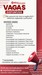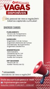 Embora as datas exatas para o início das contratações ainda não tenham sido definidas, a empresa reforça que a prioridade absoluta é para os moradores de Vera e região.