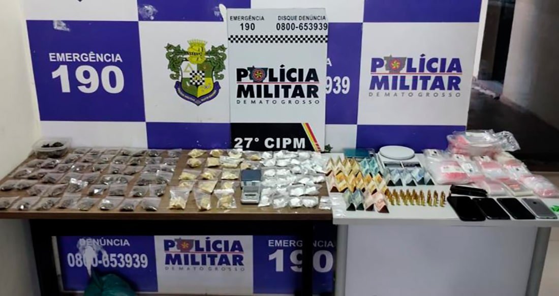 Policiais militares prenderam dois homens, de 25 e 33 anos, por tráfico ilícito de drogas, este fim de de de semana, em Confresa. Com os suspeitos, foram apreendidas 102 porções de cocaína, pasta base e skunk (super maconha), além de uma quantia de R$539,00 em dinheiro e 37 munições. Consta, no boletim de ocorrência, que a equipe policial recebeu informações de que um homem seria responsável pela comercialização de drogas e intensificou o patrulhamento no bairro Vila 2000.