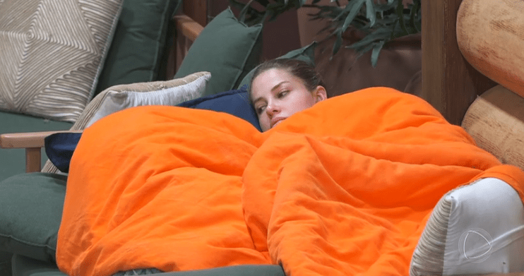 Ela levanta e leva o edredom. Deixa a coberta”, pede Dudu, em vão. “Pra você aprender a ser homem”, ouve, antes de ela ir para dentro da Sede. Momentos depois, ele entrou. “Frio demais lá fora”, disse para Carol Lekker.